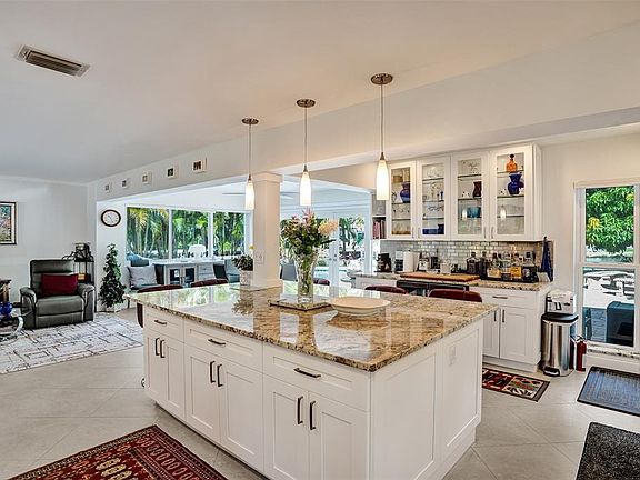 A must-see amazing waterfront home with a gorgeous pool in a very desirable Wilton Manors neighborhood. Light, bright open floorplan, magnificent kitchen, large open living/dining area, all open to the spectacular backyard/salt water pool, patio area on the water. The kitchen is beyond terrific!! Large center island, tons of cabinetry, storage, work, and entertaining space. beautiful, luscious, private and easy to care for landscaping creates the perfect oasis for your privacy and outdoor entertaining around the pool. Insta hot Propane water heater. New roof July 2023. Expansive and Relaxing water views. New AC July, 2025. Close to everything Wilton Manors and Fort Lauderdale offer you, yet serene and private. Raised Seawall with NEW CAP 2025. Currently unfurnished.