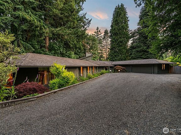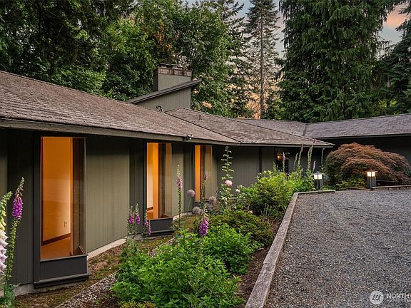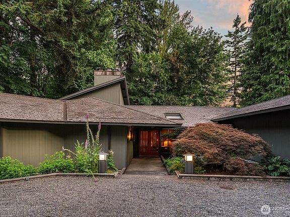 Nestled among old growth trees, this 1.4-acre mid-century modern masterpiece is truly one of a kind. Designed by renowned PNW Architect George Suyama, the home effortlessly blends his iconic early designs with modern touches. The dramatic living room features soaring 24-foot ceilings with cedar paneling. An updated kitchen with quartz countertops, ribbon mahogany cabinets & newer appliances seamlessly flow into a cozy family room. The formal dining room & bonus room are ideal for entertaining. Brand new carpet & newly refinished hardwoods grace this home. 3 fireplaces. Spacious primary with en suite. Every room invites the beauty of the PNW indoors. A rare opportunity to own a true architectural gem in the heart of Olympia.