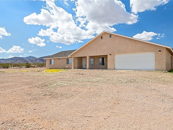 Welcome to a Golden Valley retreat where space, craftsmanship, and stunning desert scenery come together. This expansive, owner-built site-built home was created with care and attention to detail and has never been fully lived in, offering a new feel. Set on 2.35 fully fenced acres, the property captures panoramic mountain views and endless Arizona skies, making every sunrise and starry night feel magical. Inside, you ll find a thoughtfully designed 3-bedroom, 3-bath layout that includes two private primary suites one with a walk-in shower and dual vanity, the other with a full bath and shower/tub combo providing comfort and flexibility for family, guests, or multi-generational living. The heart of the home is a huge living room that radiates light and openness with its vaulted ceilings, recessed lighting, and walls of windows that flood the space with natural light and frame the surrounding desert beauty. A large, well-appointed kitchen features a center island, electric stove, pantry space, and plentiful cupboards and counters, ideal for cooking, entertaining, and everyday meals. Ceiling fans throughout the home add to the airy, comfortable feel, while the casual dining area makes gatherings easy and inviting. Every room is generously sized, creating a sense of warmth and flow that invites you to relax and enjoy. Outdoors, this property truly shines with spaces for every hobby and lifestyle dream. An oversized attached two-car garage provides convenient everyday parking, while an impressive 2,400 sq. ft. detached workshop with electricity and three roll-up doors offers endless potential for projects, vehicles, or storage. A covered front patio is perfect for morning coffee, and the extra-large covered back patio sets the stage for unforgettable desert evenings with family and friends. Practical features include a brand-new water pump, a 2,500-gallon water tank for reliable supply, and a recently graded road (use caution when driving) that leads to this peaceful escape. Whether you re looking for a private getaway, a place to store and enjoy your toys, or a forever home surrounded by nature, this one-of-a-kind Golden Valley property offers the rare combination of comfort, seclusion, and spectacular views.