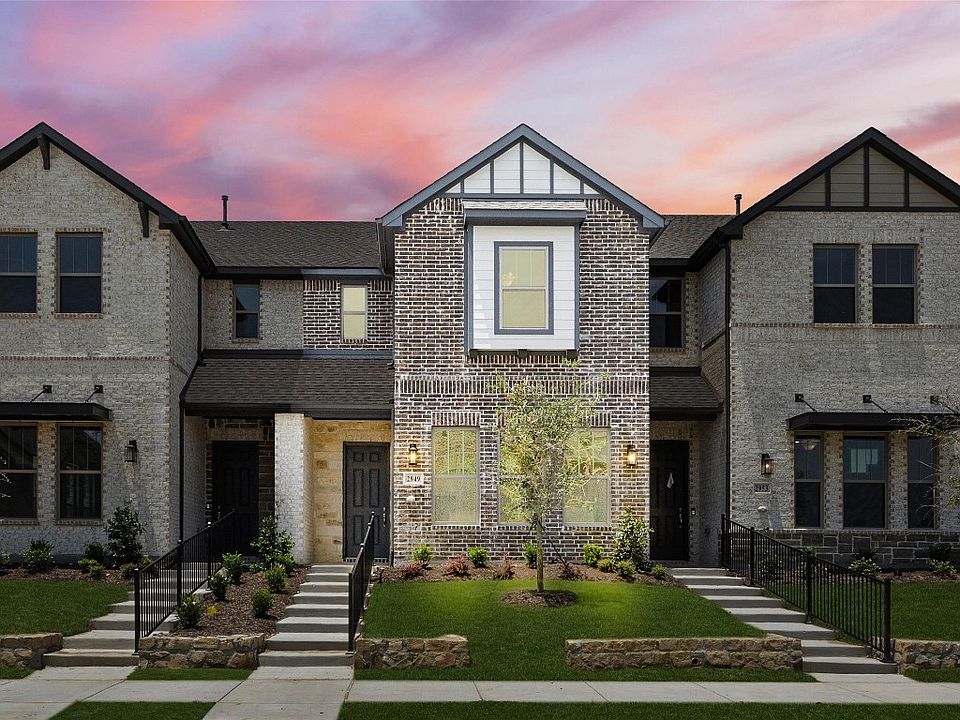 MLS# 20392050 - Built by Ashton Woods Homes - Ready Now! ~ Luxury new townhome in Sachse TX minutes from PGBT 161, US-75, DNT, 25 minutes to Dallas, and 22 miles to Legacy West. This ACME brick and natural stone townhome is the Brown design featuring the timeless collection, 8ft front & interior doors first floor with 10ft ceilings and a covered front porch. 42-inch extra white shaker cabinets, white arabesque silestone countertops, Energy Star Whirlpool stainless steel appliances, gas cooktop, built-in oven and microwave, dishwasher, Moen faucet, pendant lighting, walk-in pantry, eat-in bar top island, pull out trash drawer, white 3x6 ceramic tile backsplash, and a single bowl undermount stainless steel sink. The primary suite features a double-sink vanity with Brantford brushed nickel plumbing fixtures, ceramic tile shower with glass enclosure, ceramic tile flooring, large linen closet, Loft, Smart Home features, Ring Doorbell and much more.