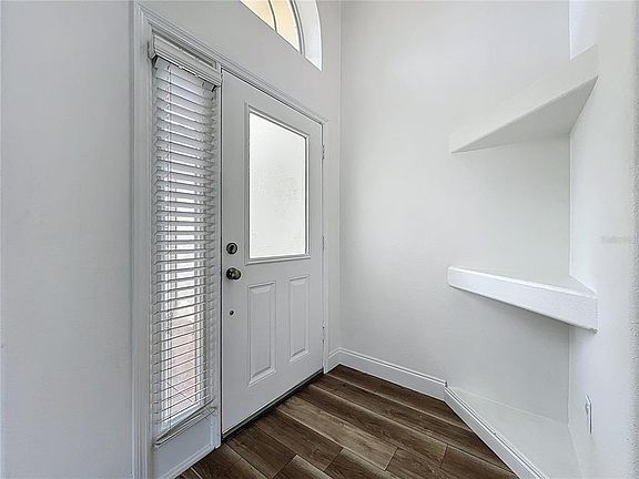 Welcome home to a bright, open living and dining area with vaulted ceilings that create a spacious and airy feel from the moment you walk in. The kitchen features granite countertops and a walk-in pantry that is open to the cozy family room with built-in entertainment cabinetry. There is crown molding through-out the living areas of the home. French doors lead out to a charming screened-in porch, perfect for morning coffee or relaxing at the end of the day. The primary suite offers a peaceful retreat with a walk-in closet. A well-appointed bath includes dual vanity, separate tub and shower and a private toilet room. Three addition bedrooms provide flexibility for guests, home office or growing household needs. This home has natural gas, roof replaced 2018 and new air conditioning replaced 2021. Conveniently located near the hospital, high school, restaurants, entertainment and minutes from I-4. This home blends comfort, practicality and everyday ease in a welcoming setting. Come and see this home!