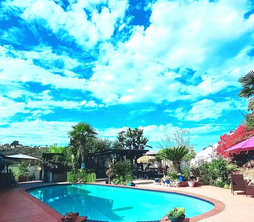 Discover your own private paradise in this meticulously preserved & renovated SINGLE-STORY home, featuring four bedrooms, a breathtaking POOL and SPA and a tranquil backyard, nestled in BEL-AIRE BONITA! Upon entering, a beautifully crafted iron gate invites you to approach a gracious double door entrance which reveals a marble-floored foyer. To your left, you will find the sunken tranquil formal living room featuring a fireplace situated near the formal dining room. Upon entering from the foyer, you can opt to turn right, revealing a vast family room with unique fireplace, built in surround sounds, situated adjacent to the kitchen and a generously bonus room that can be the center of any family sit-down dinner gathering. This space boasts French doors and two sliding doors, showcasing the breathtaking view of the pool, spa, and outdoor kitchen, which features a built-in gas grill, mini fridge, covered billiard table, custom fire pit with seating, cabana with bathroom and dressing room, with beautiful matured tropical landscaping and 20k worth of vinyl fence gives the sense of security and privacy. Next, explore the side gardens showcasing a French-inspired "SHE SHED", encircled by pollinator-friendly plants, vegetable beds, fruit trees and a multi-tiered walking path along the slope. There are too many features to list. We encourage you to visit, explore. and discover the charm of this home! NO HOA! NO MELO-ROOS! PAID OFF SOLAR PANELS. PAID OFF WATER TREATMENT SYSTEM worth $7K! REMODELED BATHROOM! COVERED CARPORT with custom iron gate, 5 SKYLIGHTS and lots of space and POSSIBILITES FOR YOU TO CREATE and make it YOUR HOME SWEET HOME!