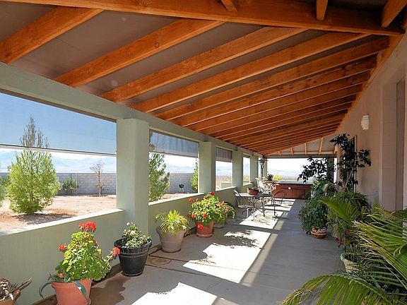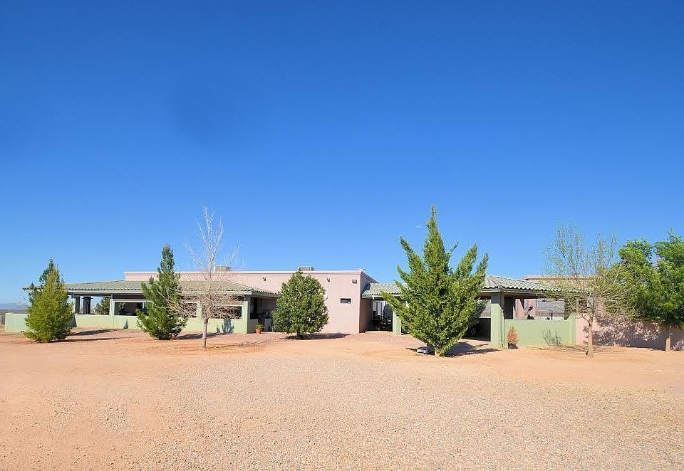 Stunning southwest inspired estate. Perfectly situated to capture soaring mountain, valley & sunset views. Grand & romantic courtyard greets you as you enter the private gates. At first sight, you'll fall in love with the home's blending of soft contemporary & gracious southwest details. Magnificent open kitchen is designed for entertaining with center island & showstopping stone accent wall. Open, warm & inviting great room incorporates fully wrap around patio to invite year round outdoor living. Spacious master suite features generously sized master bath with oversized shower & conveniently located laundry/utility room. Expert craftsmanship in every aspect of this home. The ultimate retreat for tranquility & seclusion, you will never want to leave home! MORE! Huge private courtyard for gatherings, gardening and reflection Huge vaulted outdoor Ramada for additional gathering space or outdoor kitchen Huge separate outdoor workshop with electric and shelving Oversized hot tub Wrap around patios with panoramic views Retractable screens on patio for shade Fully fenced and gated High grade outdoor security lighting Elevated home site at end of street for privacy and unobstructed views Exterior walls are masonry stucco R-30 insulation in both walls and ceilings for comfort and energy savings Interior walls are artisan crafted colored plaster Over-sized kitchen pantry Murphy wall bed in guest room Huge guest bath with walk in shower Rolling shutters in master bedroom Wood shutters in great room Road maintenance included in HOA fee Horses allowed Serviced by brand new state-of-the-art fire department