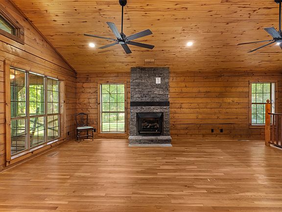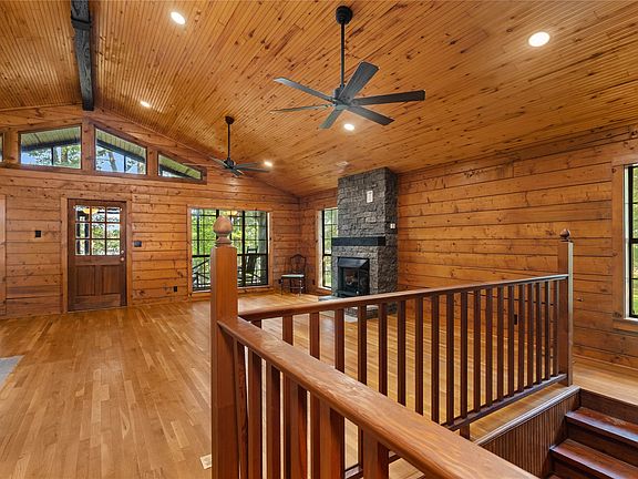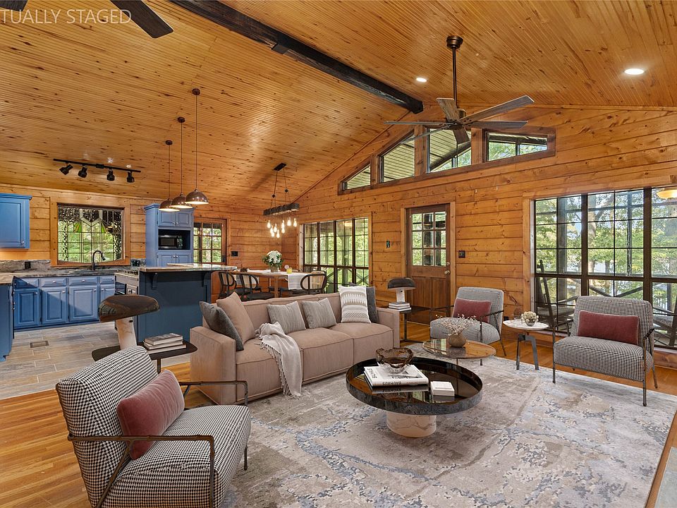 Luxury lake living at its finest! Completely renovated from top to bottom, this beautiful log home on Coleman Road combines rustic charm with modern comfort. Step inside to find soaring cathedral ceilings, expansive windows that frame tranquil lake views, and an open concept living, dining, and kitchen area perfect for gatherings. The kitchen features stunning epoxy countertops, abundant cabinetry, and a warm wood interior that creates the ideal blend of elegance and coziness.