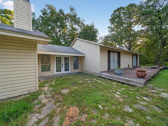Secluded setting a few miles from Hawkins and Ozarka. Quiet country lifestyle with room for pets, gardening and entertaining. Since renovations are incomplete, there's opportunity to make updates and customize according to preferences. 2 (or 3) bedrooms, 2 bathrooms on 1 acre. Living room boasts a fireplace and French doors leading to the open deck. Kitchen is a blank canvas with refrigerator and electric range/oven. Primary bedroom includes a sitting room or could be converted to a 3rd bedroom.  Create the space you imagine living in within these walls.  A sturdy metal building that can be used as a workshop/storage area/gathering shed. A metal carport with storage at the back holds 2 smaller vehicles. HVAC and hot water heater installed in 2023. 30 minutes from Lindale, Mineola and Quitman. Come by TODAY!