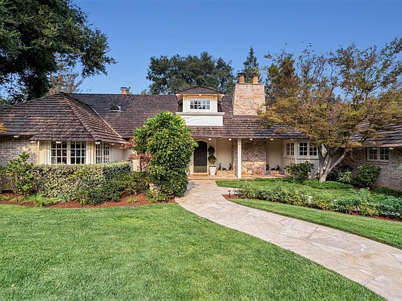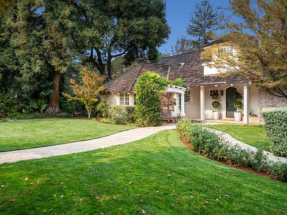 Exquisitely remodeled designer home offers Carmel inspired charm w/luxurious appointments throughout. Spectacular nearly 1/2 acre lot affords a premier location just blocks to shopping & dining at the Village. Spacious 4,000+/- sf floor plan features 4 bd/3.5 ba + office w/gracious formal living areas & inviting casual living areas perfectly suited for today's lifestyle. Chef's kitchen adjoins the breakfast area & fabulous family room w/soaring vaulted ceilings. Two main level master suites. Dazzling array of fine finishes include extensive use of natural stone, rich mill work & many custom built-ins. Offering the best of indoor/outdoor living & entertaining, many French doors flow out to the serene bkyd setting highlighted by an expansive lawn area, fenced dog run & flagstone terrace w/built-in BBQ & hot tub. Incredible 5-car detached garage (approx 1,175 sf) w/finished bonus rm ideal for home gym, yoga studio or additional home office. Solar panels owned. Top rated Los Altos schools.