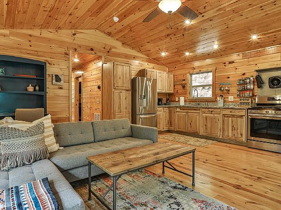 This darling real log cabin with metal roof is sure to fulfill all your desires for that private setting in the N GA Mountains! Being sold completely furnished. Featuring 2 bedrooms and 1 bath, granite counter tops, 2.73 private acres, a concrete driveway, along with a bonus storage container workshop that's about 300 sf of insulated space with electricity, wired internet and an air unit. Add in a seasonal mountain view, small charming branch and the fact that you are in the heart of the Cartecay area, which is just minutes to Rich Mtn Wilderness, and you have a winner! Internet is 300mb download. Very gently used and in great shape! Perfect to rent and keep the container for all your fun adventure gear!