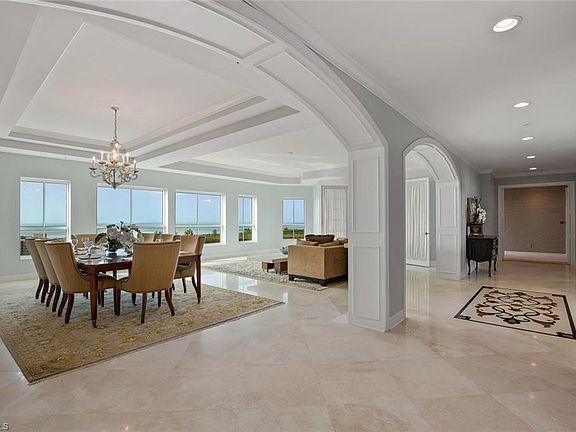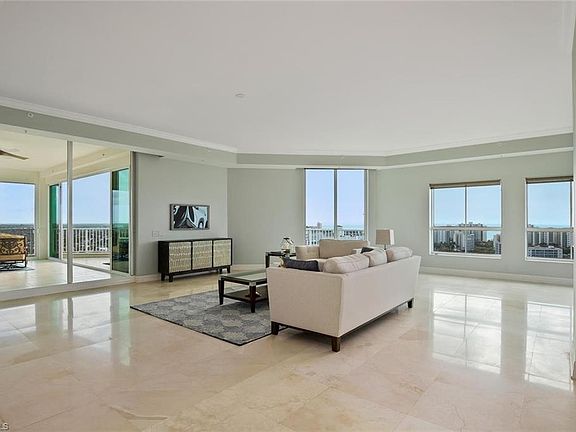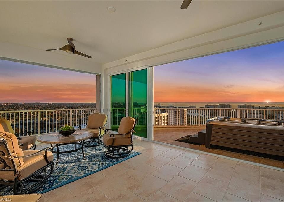 KING OF THE HILL! VIEWS VIEWS VIEWS! Enjoy expansive and towering views all the way South to Downtown Naples and North to Sanibel Island with this rarely available Penthouse in the Sky. If you are looking for the Most Grandiose Luxury Residence in The Dunes, you have finally found it!! Nearly 6,000 Sq. Ft. of Spectacular Luxury Penthouse Living, with an Outdoor Rooftop Balcony and private Hot Tub overlooking the Gulf of Mexico, Custom All Glass Old Style Florida Room, and unforgettable views from every room. Custom Italian Marble throughout the main living areas, extra high Penthouse only ceilings, custom built in woodwork, wet bar in one of 2 Master Suites, theater, and a 2.5 Car Private Garage (can fit 3 cars) with an additional prime parking spot, extra storage, and SO much more! At just under 6,000 sq. ft., this luxury Penthouse is an exceptional value when comparing price/ sq. ft. of other Penthouse properties in town. Truly an amazing investment for those who want to move in and enjoy an exceptional lifestyle, or renovate to their own flavor. Brand New State of the Art Clubhouse awaits with amazing amenities, active tennis program, and social atmosphere. Pet friendly.