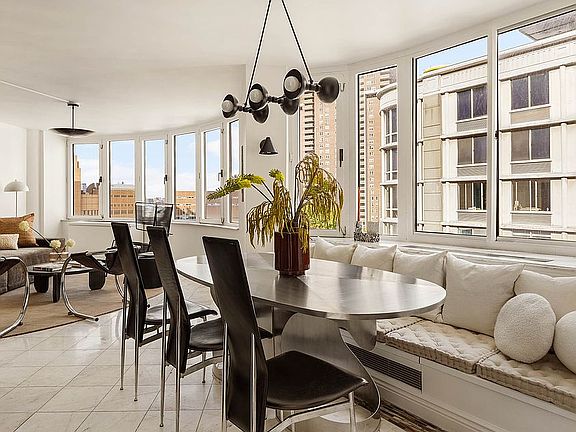Viking appliancesArchitectural staircaseGenerously sized bedroomsCorner duplexCustom-built walk-in closetBuilt-in seating banquetteWall of curved windows