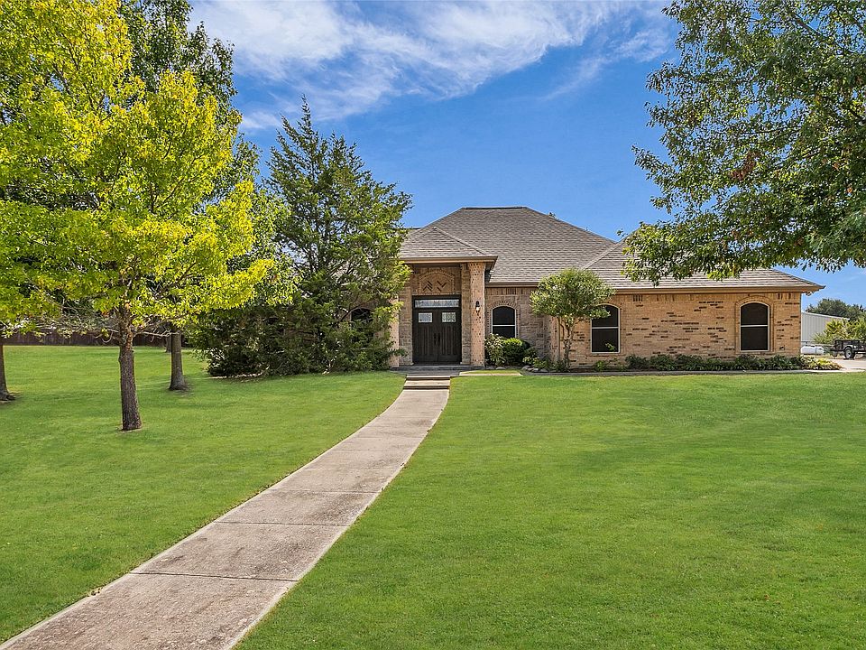 Outstanding One Story 4 BDRM 2 Bath On 1 Acre Cul-de-Sac Lot In McKinney! No HOA! New Roof & Carpet 2025! Exquisite Marble Floors in Foyer, DR & Hallway! KT Has Granite Countertops W Tumbled Marble Backsplash, New Gas Stove, Vent-A-Hood, Newish Dishwasher & Pantry. Propane Heat! Extended Front Driveway For Boat Or Other Vehicles. Oversized Garage Has Insulated Garage Door, Metal Garage Storage Cabinets & Air Conditioning Vent. Brick Pillars leading Into LR. Spacious LR Has Recessed Lighting, Fireplace & Stair Stepped CF & Moldings. Oversized Primary BDRM Has Moldings, Stair Stepped Ceiling & Bath W Whirlpool Tub + Shower (W Marble Surround) Dual Sinks, Granite Countertops, & Large WIC. French Doors To One BDRM. Utility Room Has Cabinets. Second & Third BDRM's Share Full Bath W Tile Floors, Pedestal Sink, Blt-In Shelves, & Tub W Travertine Surround. BK Room Has Track Lighting. DR Has Art Niches & Stair Stepped Ceiling. Aerobic Septic System. Private Back Yard is Partially Fenced w Wrought Iron Fence. Large Tile Back Porch Has Ceiling Fan. Hard To Find One Story Custom on One Acre Lot With Mature Oak Trees In McKinney. Home is Near the End of Quiet Cul-De-Sac Street! Wonderful Property!!
