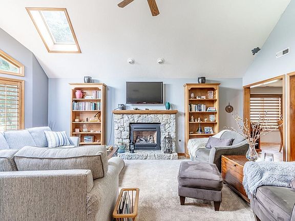 Located in the beautifully maintained neighborhood of Paradise View on the west side of Jimmerson Lake. One and a half story home with 3 bedrooms, 2 bathrooms and a 2.5 car attached garage. Entry foyer is open to the upper level loft with vaulted ceiling and tile flooring. Living room features a cathedral ceiling, gas fireplace, tile flooring, skylights and is open to the dining room with slider to the screen porch. The screen porch gives you access to the patio and fenced backyard. Nice sized kitchen boasts Harlan cabinetry, luxury vinyl plank floor, island with cooktop, 2nd sink, built-in wall oven, microwave, pantry closet, breakfast area and a slider to the backyard patio. There are two guest bedrooms, a full bathroom and a laundry room with utility sink on the main level. Upstairs you'll find a 14x12 loft and the private master suite with skylight, jetted tub and a separate tile shower with glass door. All kitchen appliances plus washer and dryer are included. Some furnishings may be available to purchase outside the sale. Access to Jimmerson Lk available at lot 1 which includes a boat ramp. The Furnace and central air unit were new in Jan. 2020.