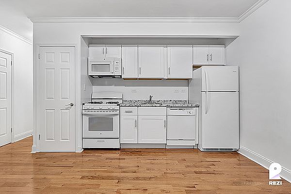 **Apartment 1F** is a spacious four-bedroom apartment featuring hardwood floors, a spacious kitchen (including a microwave & a dishwasher), and high ceilings. **295 Maple St** is a 36-unit, 6-story residential building nestled on a tree-lined street in Prospect Lefferts Gardens surrounded by local restaurants, cafes, green spaces, and shops. **Listing reflects applicable promos, see REZI website for more information.** **In the Neighborhood Prospect Park Wingate Park Brooklyn Museum Stop & Shop Brooklyn Perk Coffee