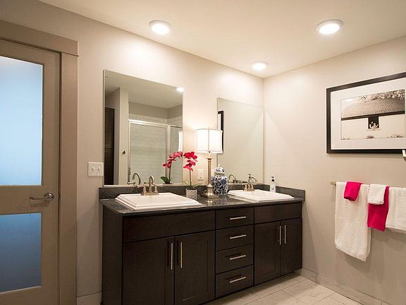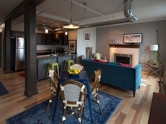 Each space features elegant finishes such as granite countertops and engineered hardwood throughout. Lofts include in-unit washers and dryers and stainless steel appliances, and the building offers a full array of amenities like on-site gated parking, a fitness center and a rooftop deck.
