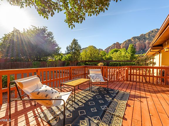 Spectacular price reduction! Settle in while we still have beautiful Fall weather! Tranquil Pine Valley home with VIEWS. Opportunity for a picturesque Sedona Airbnb, or as a forever-home living the peaceful life in the Village of Oak Creek. This sprawling home has high ceilings & classic craftsmanship throughout, making it a rare-find in Sedona. From bay windows, to built-ins, to hickory wood flooring, the traditional charm abounds. Nearly 3,000 square feet of open layout makes hosting family & friends a dream. Large fully fenced backyard with beautiful river rock landscaping and unobstructed views of Lee Mountain! Skylights, primary walk-in closet, walk-in pantry, and a floor-to-ceiling custom fireplace, complete this special home. Enjoy the peaceful life with friendly neighbors and No HO. Transferrable American Home Shield Warranty. Just a short drive to VOC for shopping and dining. Private Water & Fire company in this community for your peace of mind. Take this opportunity to bring your vision to life!