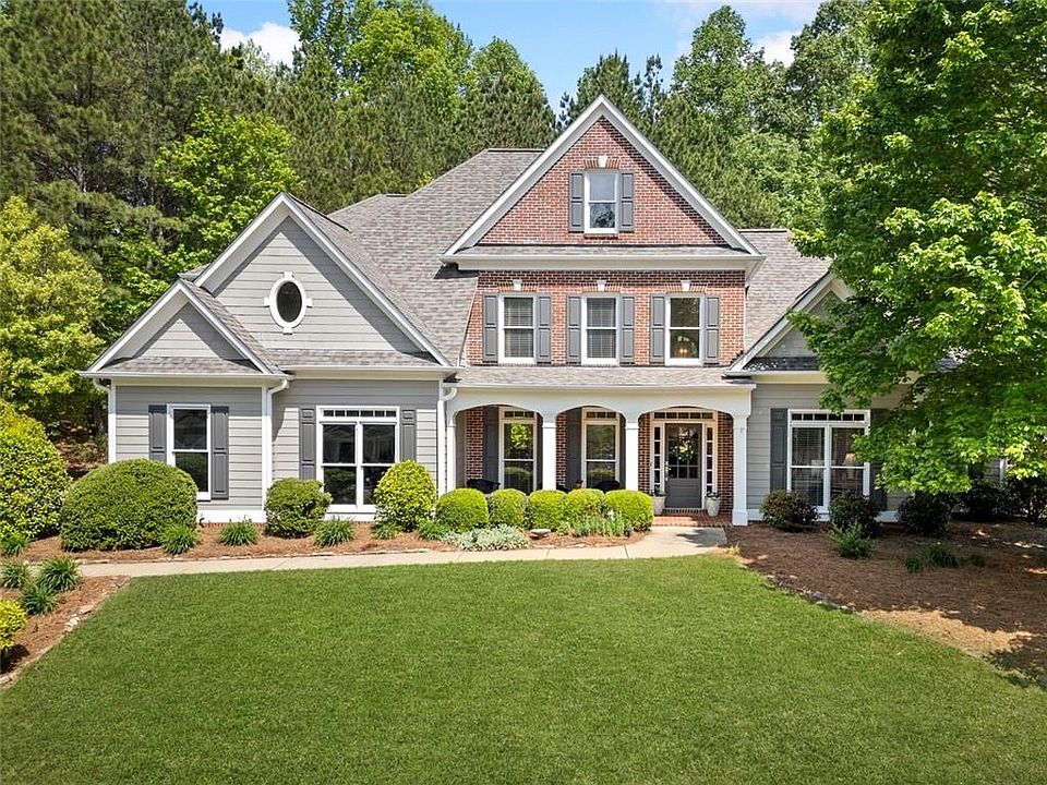 Tucked away in the beautiful neighborhood of Laurel Brooke, you’ll find a home that cannot be beat. Convenient to Downtown Woodstock, Milton, Alpharetta, Roswell, Interstates and in a top-rated school district. First time offered on market; this move-in ready home has been lovingly cared for and updated by the original owners. As you walk up to this grand home, you’re greeted by an expansive front porch. The open floor plan allows for a seamless flow between living areas, creating a comfortable and inviting atmosphere. The main level features real oak hardwood flooring throughout, a two-story Foyer, a Formal Dining Room with trayed ceiling, a vaulted Living Room makes the perfect Study or Home Office, the two-story Great Room with floor to ceiling windows and an abundance of natural light, enhancing the overall ambiance. Looking for a private and tranquil Primary Suite? The generously sized Primary Suite has a sitting area perfect for relaxing. The En-Suite Bathroom provides a relaxing oasis, with dual vanities, walk-in shower, garden tub, and two walk-in closets. The Kitchen is a culinary delight with real wood cabinets, stainless steel appliances, quartz countertops, quartz backsplashes and a vaulted Breakfast Room with views of the Great Room. Take the stairs up and you’ll discover three generously sized Secondary Bedrooms. One Bedroom features a vaulted ceiling and a private Ensuite bathroom. Two additional Bedrooms share a jack-n-jill bathroom. Plenty of storage available with direct attic access. Whether you’re enjoying a quiet morning, hosting a BBQ, watching nature unfold in your backyard, or sitting by your Koi Pond, you’ll be creating lifelong memories in your new home.