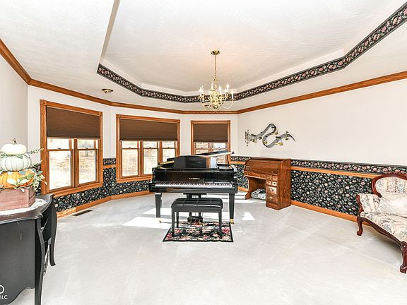 Spacious Home on 3 acres of privacy. All bedrooms have private bathrooms. 2-story family with fireplace between family room and kitchen. Main floor primary suite with walk in closet, and hot tub room. All bedrooms are spacious. Kitchen with quartz counter tops. Full basement with office, recreation room and 2nd fireplace. In ground pool with automatic pool cover overlooking spacious back yard. Property goes back to the creek. 1 year home warranty, property to be sold in As-Is condition. Roof is 4 years old. 1 of the HVAC systems is 1 year old.