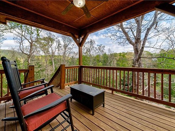 Beautifully maintained 3 bedroom 2.5 bath cabin on 1.3 acres with mountain views! Private wooded lot. Soaring ceilings and a bright and open floorpan. Stacked stone fireplace and a wall of windows in the family room. Master on the main and generous sized secondary bedrooms. Covered front porch and huge covered back porch along the entire back of the home. Metal roof, unfinished basement, and a separate carport.