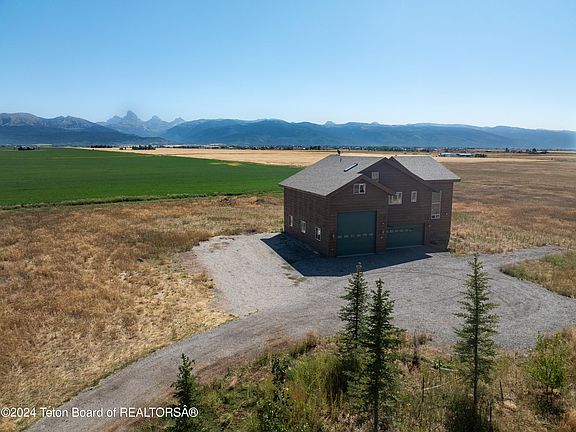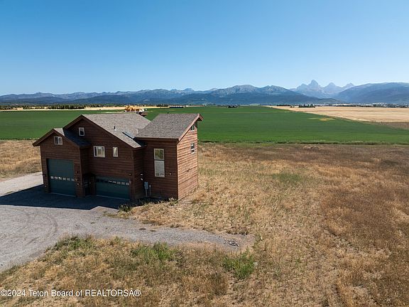 Buyers should take a look at the unobstructed four peaks views on this one! This 2.5 acre property, not in a subdivision, has large farmland parcels to the east and the south. The structure on the property is a 3 bay oversized shop/garage. Above the garage is a 3 bedroom, 2 bathroom apartment built in 2005. So many possibilities for this property: there is fabulous shop space for work & storage, comfortable living quarters above the garage for owner, employees or tenants. A new owner could work with an architect to add on the home and/or there is space to build another structure. The property offers exceptional privacy as it is the end of the 4350 N and the eastern border is being farmed. A piece of Teton paradise.