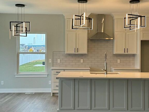 Open floor planBrick and stone exteriorStaggered-height merillat cabinetsTray ceilingEuropean glass doorLvp flooringFrosted entry door