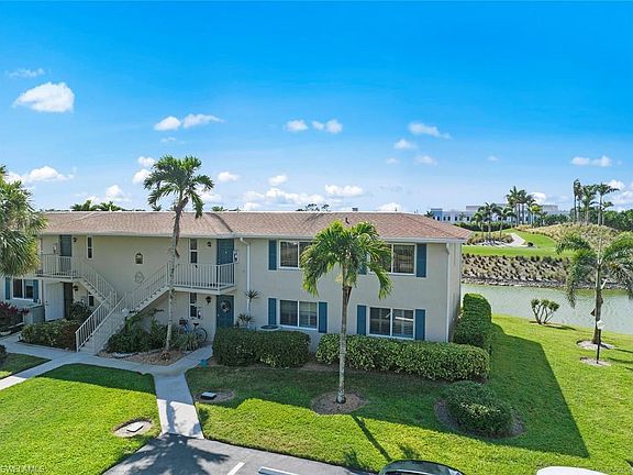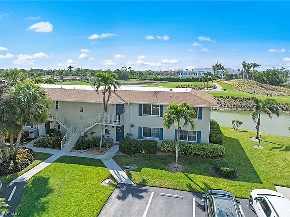 Location, location, location! This super clean second floor condo boasts a fantastic view of the 6th fairway of the Pines golf course and beautiful ponds and fountains. With over 1,542 square feet of living space you will enjoy 2 split bedrooms and baths so you and your guests have privacy. The kitchen has a laundry area with a 2 year old washer & dryer. This move-in ready condo has a neutral color scheme and neutral furniture throughout. This lovely condo is located in the Glades Golf & Country Club a bundled golf community with 2 renovated golf courses the Pine a par 70 and the Palmetto a par 55 both are Gordon Lewis designed and have sustainable landscaping and is a haven for local birds. It is located 10 minutes from downtown Naples boutique stores and restaurants and gorgeous beaches. Other amenities include tennis, pickleball, 9 swimming pools, bocce, a library, pro shop, 19th hole restaurant and clubhouse with many activities throughout the season. Exclusions include piano in dining room, metal art in living room, painting in Master Bedroom. AC new in 21. Hot water heater 8 years old. Your piece of paradise is here!