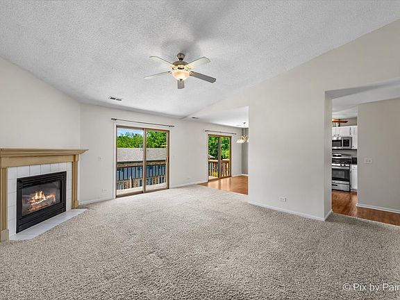 Rarely available condo in the St. Charles school district! Large open floor plan with a spacious living room, dining area and gas fireplace that turns on easily by flipping a switch. Large kitchen with sliding doors to balcony. Large master bedroom has it's own bathroom. This property includes a 2 car, tandem garage with additional space for storage. The Woodridge subdivision is close to the Fox River, with access to miles of trails, parks, bandshell and fishing. Beautifully wooded area and also close to Stearns Rd for easy commuting.