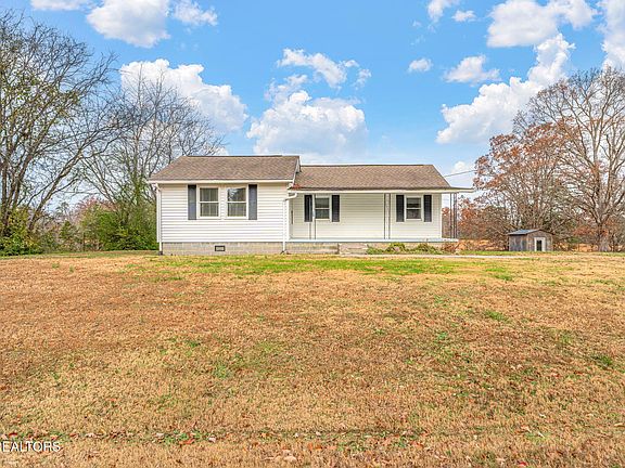 Charming ranch-style home nestled in a peaceful country setting. Featuring 3 bedrooms and 1 full bath, this property offers comfortable living with plenty of flexibility. The large kitchen boasts abundant cabinet space, perfect for storage and meal prep. A versatile flex area can serve as a dining room, office, or cozy den to suit your lifestyle. The family room showcases hardwood floors and generous windows that fill the space with natural light, creating a warm and welcoming atmosphere. Enjoy outdoor living with a covered front porch and a covered back porch overlooking the backyard, providing plenty of space for kids or pets. A storage shed provides extra space for tools and equipment. No Restrictions. This home qualifies for 100% Rural Development financing making it a wonderful option for first-time home buyers. and is conveniently located just a short distance from the local school. Perfectly positioned between Vonore and Maryville with easy access in either direction. Home is being separated from larger acreage tract, taxes have not been accessed. Buyer and or Buyers Agent to verify all information.