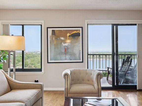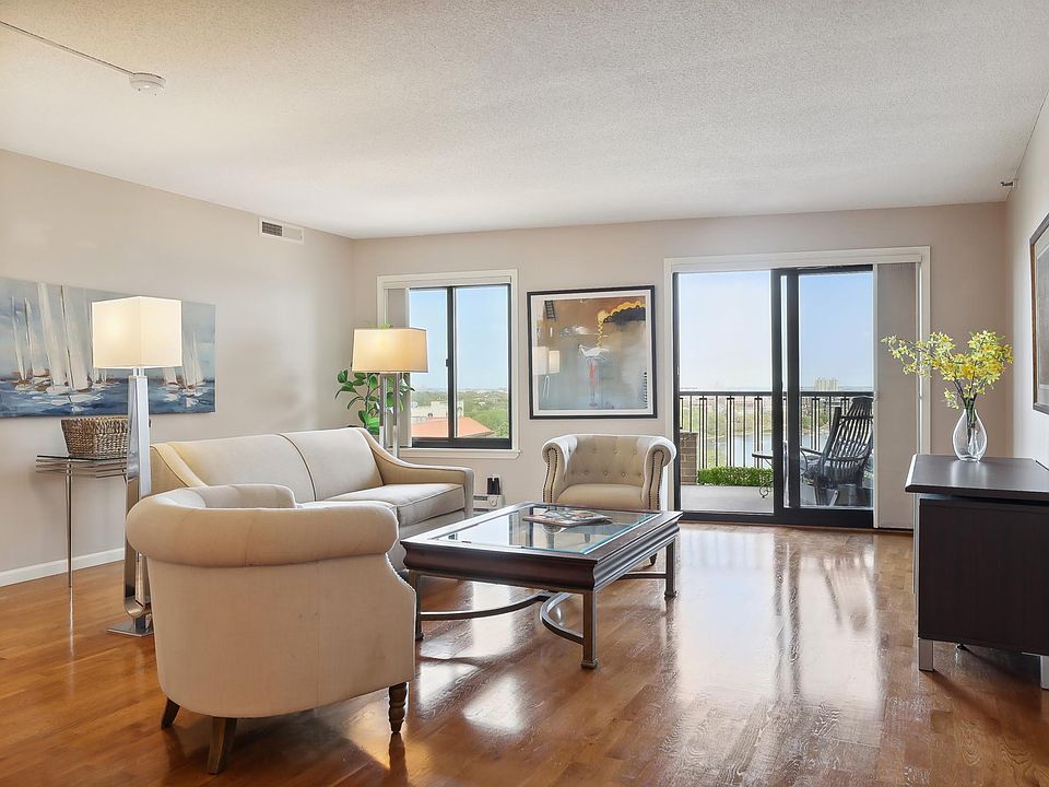 Amazing views of the lakes and the downtown skyline from this wonderful two bedroom two bath corner condo. Great floor plan with new open white & granite kitchen with self closing cabinets. New rich hardwood floors throughout. Primary bath features new soaking tub, new tile and new vanity in dressing area plus custom closet. Techline closets and bed enhance 2nd bedroom. Lake Points amenities are unsurpassed. Ideal lakes location. Stroll to lake or to shopping, dining and more.