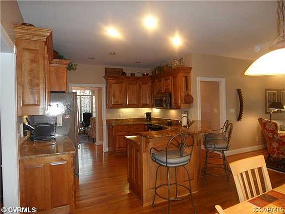 Reduced! All brick home- 3 bedrooms, 2.5 baths on 1st floor & media room on second plus walk in storage. Hardwood floors on 1st level, tile baths. Huge dining room for entertaining, upgraded kitchen includes seamless granite tops, new microwave, pantry cabinet with pull out shelves, raised panel cabinets, 9' ceilings and higher throughout the 1st floor. Home has master with 2 walk in closets, a luxury bath and door to raised terrace & screened in porch. A paved circle driveway, fenced in back yard part invisible plus wire. Yard has irrigation. Home has so much to offer close to YMCA, central Powhatan, 20 minutes to Rt. 288, shopping and more. Perfect condition and you will love the screen porch, extra detail in home and the extra storage shed 12 x 16. Cable is Comcast. 2 acres. Move in!