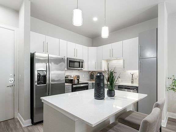 SYNC Med Center's pet-friendly apartments in Houston's Medical Center offer beautiful One, Two, and Three bedroom floor plans in a luxurious, modern style you'll love. Each home includes a gourmet kitchen with stainless steel appliances, designer wood cabinets and granite slab countertops. Enjoy coming home to open floor plans with large, sunny windows and expansive 10-foot ceilings. Step inside one of our spacious apartments, including thoughtfully renovated Elite homes, and discover an elevated way of living.