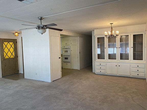 Great Mobile Home in a NO-Age restriction park, close to transportation, shopping and dining. This double wide home features a large open concept living/dining space complete with built-in dining bar. The kitchen has a double oven and pantry closet and there is lots of built-in storage throughout the home. The HVAC system was upgraded just 5 years ago so you can keep cool or cozy no problem. Outside you'll find the covered carport with room for two cars parked in tandem as well as a large covered patio, fenced area for your furry friend, and extra storage with the two sheds. The community features a clubhouse, pool, and guest parking areas.