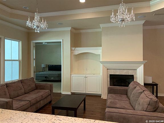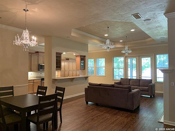 Casual elegance located in Retreat Place in Haile Plantation, Gainesville's most beautiful neighborhood. Walk to Publix, restaurants, liquor store and bank. This 3 way split, 4 bedroom, 3 bathroom home offers an open floor plan, fireplace and spacious lanai. Plenty of backyard privacy fenced for pets and kids. Beautiful Gourmet kitchen w/SS appliances, granite counter tops and loads of cabinets. Formal and informal eating areas, spacious great room great for entertaining. Beautiful crown molding and tray ceilings grace the great room and master suite. Luxury bath has walk-in shower, double vanities and garden tub. 2 guest bedrooms downstairs and shared bath. Upstairs really good size bedroom w/ensuite bath and a Huge storage closet. The perfect place for staying in place. Miles of sidewalks for your enjoyment. Call today for your private tour.