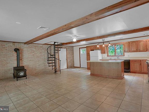 - Ceiling Fan(s), Kitchen Island, Window Treatments, Recessed Lighting, Built-Ins, Dining Area, Crown Molding, Carpet, Wood Stove, Wood Floors, Attic, Formal/Separate Dining Room, Attic/House Fan, Tub Shower, Spiral Staircase