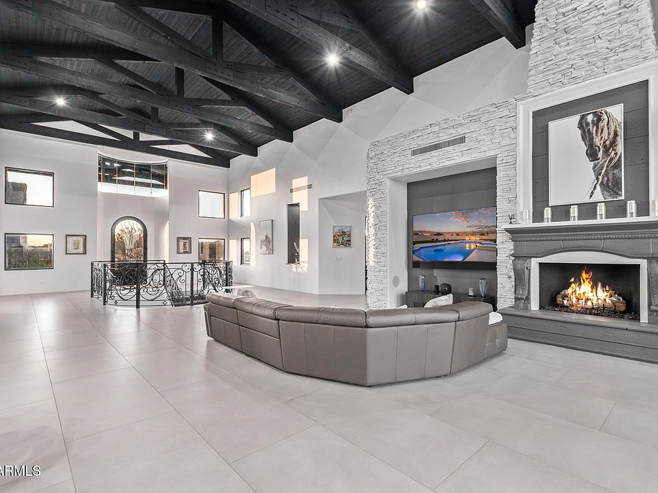 This impeccably designed custom estate seamlessly blends modern luxury with resort-style living. Set on a private 2.3-acre compound with no HOA, this masterpiece offers an unparalleled lifestyle. Priced under recent appraised value. From the moment you arrive, soaring exposed wood beam ceilings extend from the grand portico through the main living areas and out to the expansive back patio. Recently redesigned with contemporary elegance, this meticulously maintained home is move-in ready and perfectly positioned to capture Arizona's breathtaking sunsets, sparkling city lights, and majestic mountain views.