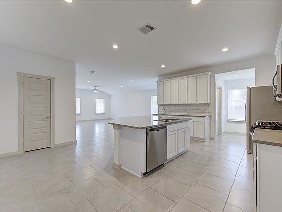 Move-in ready 1-story Kingston plan in Tamarron. Home features 4 bedrooms, 2 full baths, and 2 2-car garage. Open concept floorplan boasts a spacious family room and dining area. Primary suite with double vanities, spacious walk-in shower, and walk-in closet. Tile in common areas and carpet in all bedrooms. Large backyard with covered patio. Gourmet Kitchen W/Beautiful Tall Shaker Cabinets, Tile Backsplash, Stainless Steel Appliances, Huge Eat-In Island, Gorgeous Silestone Quartz Counters, Undermount Sink, Walk-In Pantry & More! Primary Suite tucked away. Luxurious Bathroom with His & Her Private Undermount Sinks, Cultured Marble Countertops, Massive Seamless Glass Shower, & Huge Walk-In Closet! 3 Guest Bedrooms tucked away & Full Bathroom W/Cultured Marble Countertops! HERS Energy Rated, Tankless/On-Demand H2O Heater! "Smart Home System which allows you to control the Skybell, Locks, Lighting, Thermostat, Wireless Security & control anywhere! Washer, Dryer, Fridge included.