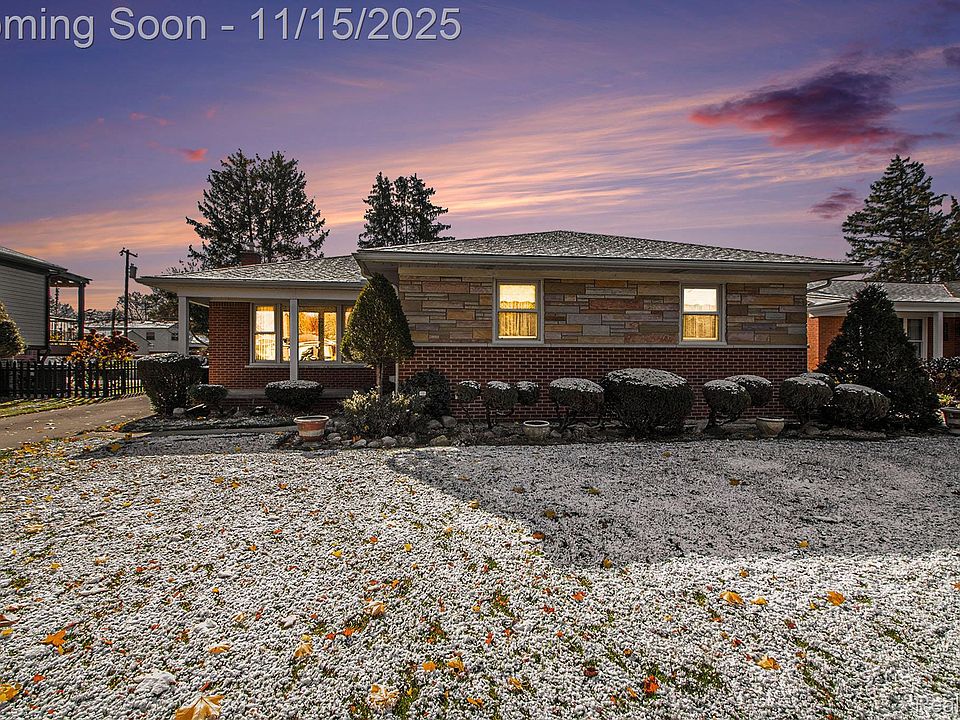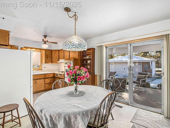 The original owners welcome you to this well-maintained brick ranch that offers the perfect blend of comfort, character, and convenience. From the moment you arrive, you’ll be impressed by the home’s curb appeal — beautifully landscaped front yard, mature bushes, and a charming covered front porch that provides a welcoming entrance and a relaxing spot to enjoy your morning coffee. Step inside to find a bright and spacious living room filled with natural light from a large picture window, creating a warm and cheerful atmosphere. Hard wood underneath the carpet. The living room flows seamlessly into the open kitchen and dining area, making it ideal for both everyday living and entertaining. The kitchen offers abundant cabinet and counter space, perfect for those who love to cook or bake. A sliding glass door leads directly to the covered back patio — a wonderful extension of the living space where you can unwind, grill out, or enjoy peaceful views of the backyard. This home features four comfortable bedrooms and two full bathrooms, providing plenty of room for family, guests, or a home office. The partially finished basement offers even more versatility with a cozy family room centered around a beautiful fireplace, creating the perfect gathering space for movie nights or quiet evenings. There’s also a spacious workshop area ideal for hobbies, projects, or extra storage. Outside, the partially fenced backyard provides a great space for gardening, to relax or entertain. The detached two-car garage adds convenience and additional storage. Updates include: AC/Furnace 10yrs, HWT 5yrs, All Windows 8yrs, New lawn 6yrs. Close to I-96, I-275 and M5 for an easy commute. Wonderful shopping, dining and entertainment nearby. With its thoughtful layout, charming details, and desirable features inside and out, this brick ranch is ready for you to move right in and make it your own. Don’t miss the opportunity to call this beautiful property your next home!