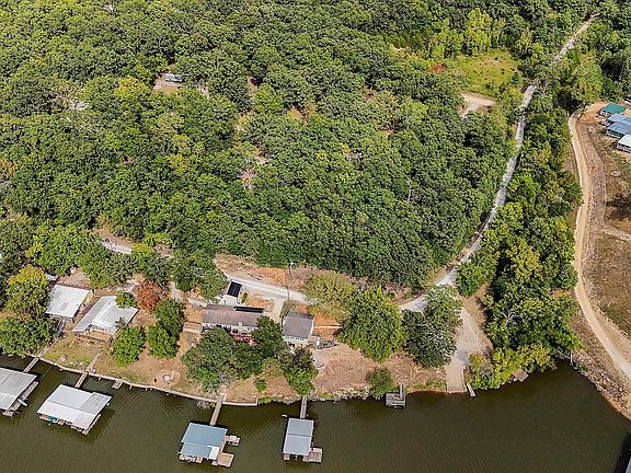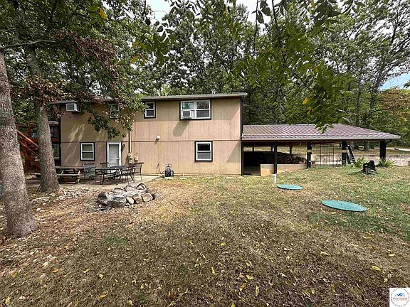 Discover your lake retreat in Edwards, MO! This updated home sits on approx. 3 +/- acres with a natural setting and seasonal Lake of the Ozarks views. The community boat ramp is just steps away—perfect for fishing and lake fun! Recent upgrades make this 2 bedroom home move-in ready: freshly stained decking, two remodeled bathrooms with a heated jetted tub featuring lighting and waterfall features, an updated kitchen, living room, and hallway, plus a brand-new septic system. The full walk-out basement offers a second kitchen, a non-conforming 3rd bedroom, a full bath, and a large storage area with two sets of French doors and a back entry—easily finishable for extra living space. Enjoy the landscaped yard, cozy firepit, patio, and plenty of deck space for BBQs. Parking is abundant with a 2-car carport and a detached 4-car garage with pull-through doors, workbenches, and storage shelves. With its private setting, generous acreage, and space to grow, this property is a rare find!