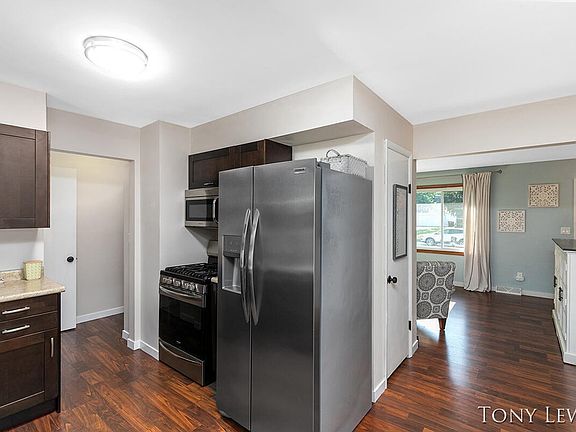 Great convenient location on cul de sac. Shows great w/fresh interior paint, roof approx 5 years, new patio w/pergola & sliders to dining area, newer laminate floors, new baseboards, remodeled bath w/new quartz vanity, hardwood floors, double closets, new led lights, new windows 4 yrs throughout, awesome dry bar in beautifully finished basement, newer kitchen, stainless steel appliances, and counters. Treadmill in basement stays. TFLA estimated. Room desc: LR, Kit, DA, 1/2 BA, 3 BR, BA, DN FR, laundry, storage