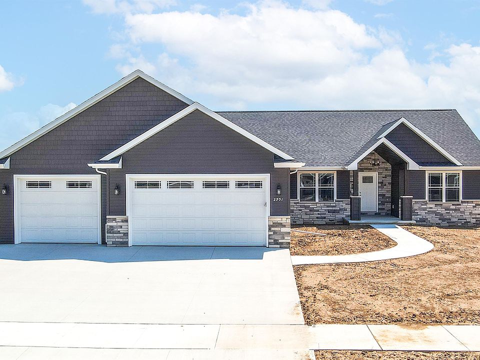 This spacious ranch features a 60 foot 3rd Stall garage for 4+ cars!! Kitchen features SS appliances, white cabinets, WIP, granite counters throughout & tile backsplash. Primary BR off dining area with HUGE WIC. En-suite includes tile shower and double vanities. Living room flanked with gas fireplace & open concept. Main floor office is a huge bonus. LL boasts finished family room, 4th BR & full BA! Above garage is walkup attic for more space. Buyer(s) are aware that any, and all costs related to future or current special assessment on the property in relation to Street, curb, gutter, and/or final apron are at the cost of the Buyer(s). Seller to install temporary concrete apron with driveway for convenience to Buyer(s). All future assessments for concrete are not included in the sale.