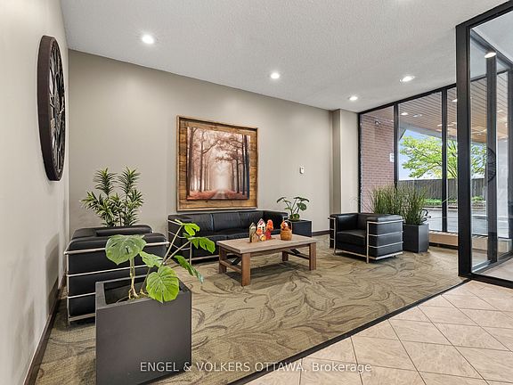 Welcome to The Denbury, a beautifully renovated condo in the heart of Riverside Park. Fully renovated in 2018, this 10th-floor unit features a complete transformation: kitchen walls removed, all-new cabinetry and countertops, updated bathroom with large stand-up shower, new flooring, and fresh paint throughout. The bright, open-concept layout offers incredible views of the Rideau River, lush trees, and nearby parks through brand new patio doors (2024). The spacious kitchen boasts sleek quartz countertops, a functional island for dining or entertaining, stainless steel appliances, and ample cabinetry, all flowing seamlessly into the dining area and cozy living room. 2 well-sized bedrooms offer generous closets, complemented by a stylish bathroom with dual sinks. Includes 1 covered garage parking spot, 1 storage locker, and 1 in-unit storage room. Residents enjoy new laundry machines on the same floor for added convenience, outdoor pool, gym, sauna, tennis court, party room/library, and 2 guest suites. Perfectly situated directly across from Mooney's Bay Beach, and just minutes from Hog's Back Park & Falls, scenic bike paths, Lansdowne Park, Billings Bridge Shopping Centre, Carleton University, RA Centre, and more. Bright, stylish living awaits!