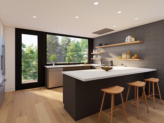 Throughout the community, you'll discover meandering walking trails that invite exploration and relaxation. Each residence will come equipped with the ''Signature Package, featuring elegant quartz countertops, engineered wood flooring, an EV charger in the garage, and balconies extending from the upper bedrooms, kitchen, and living room. For those looking to elevate their living experience, the "Luxe Package" is also available. It includes premium features such as quartz countertops with waterfall edges, a 24" under-counter bev/wine center, high-end Wolf and Bosch appliances, tile and 3/4" real wood flooring, handmade Heath ceramic wall tiles in the primary bath, and beautifully painted slat panels in the living room.