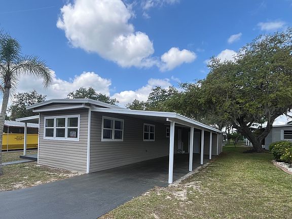 Welcome to your beautifully remodeled retreat in the heart of sunny Sebring, Florida! Located in the vibrant 55+ community of Oak Ridge, this stunning two-bedroom, one-bath single-wide home has been thoughtfully updated from top to bottom. Step inside to find elegant sheetrock walls and ceilings, warm woodgrain laminate flooring, and a bright, open floor plan that seamlessly connects the living, dining, and brand-new kitchen areas. The kitchen sparkles with modern finishes, while the bathroom offers a luxurious walk-in shower. You'll love the energy-efficient LED lighting throughout, all-new plumbing, and a brand-new AC unit to keep you cool year-round. Relax in your spacious screened lanai, or take advantage of the extra-long carport and oversized attached shed-perfect for storing golf clubs, seasonal décor, bicycles, and more. Don't miss the opportunity to enjoy low-maintenance living in this beautifully upgraded home in one of Sebring's most active and welcoming 55+ communities! With a low monthly lot rent of just $839, which includes water, sewer, trash pickup, and lawn mowing, this home is not only affordable but also hassle-free. Don't miss the opportunity to make this move-in-ready home yours today! Not yet 55? No problem! We assist with park approval for qualified 45+ individuals or couples. Reach out to Patti today for the details that will transform your homeownership journey! *All listing information is deemed reliable but not guaranteed and should be independently verified through personal inspection by appropriate professionals. Listing company cannot guarantee or warrant the accuracy of this information or condition of the property. The buyer assumes full responsibility for obtaining all current rates of lot rent, fees, and pass-on costs. Additionally, the buyer is responsible for obtaining all rules, regulations, pet policies, etc., associated with the community, park, or home from the park manager.