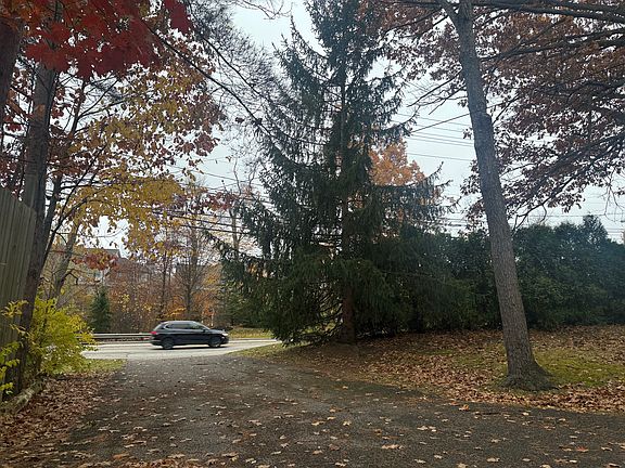 Property sits on 1 acre peaceful lot, surrounded by mature trees. Very large circular driveway with extensive parking areas in addition to garage.