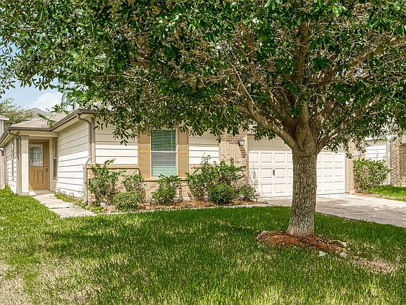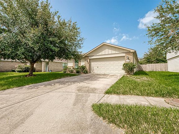 Stunning 3 bdrm 2 BA 1 story home w/flex RM as study/office ft. spacious open floor plan, neutral colors through-out, & cul-de-sac location. Kitchen complete w/ tile floors, laminate counters, tile backsplash, double basin SS sink, & opens to den. Breakfast area w/access to backyard. Spacious den w/wood look tile floors & ceiling fan. Carpeted primary bdrm w/large closet& ceiling fan. Primary BA showcases double sinks, plus bath/shower combo. 2 secondary bdrms will fit queen size furniture & share bathroom. Home has plenty of potential w/2 secondary bedrooms +extra RM allowing for flexibility to use these spaces as study/library, hobby RM, home gym, music RM, playRM, or whatever fits your lifestyle best. 2 car attached grg, double wide driveway, utility RM & large backyard. Located in sought-out Conroe ISD! refrigerator included.Main living areas/hallways/ rooms now ft. wood-look tile instead of carpet. NO CARPET. Home recently painted through out.