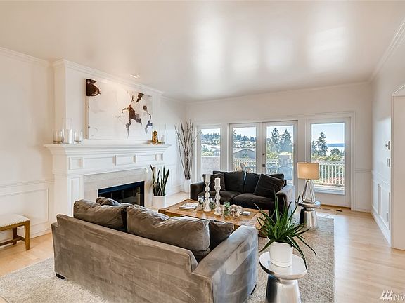 Beautiful, renovated entertainer's home. Over 170k in upgrades. Three sets of French doors lead to the 700 square foot deck with territorial Sound & Olympic views. New kitchen with quartz waterfall countertops and Thermador appliances. Four completely updated bathrooms. 9 foot ceilings throughout. All new landscaping in 2016. Oversized three car garage with abundant storage. Gated community with private beach access. Imagine yourself enjoying the sunset every evening!
