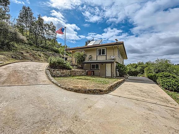 Discover this enchanting country retreat nestled on just over 6 acres in the picturesque hills. A private gated driveway with mature trees, small orchard, variety of fruit trees, a private creek with a cascading waterfall. This country home features 4 bedrooms and 3 baths with 2100 sq. ft., and owned solar system while indulging in the beauty of nature. Two spacious storage containers. Inside, a split-level layout offers flexibility and privacy, with four entrances and plenty of outdoor parking for guests. The recently upgraded kitchen features brand new stainless steel smart appliances, while a cozy wood fireplace adds warmth and character to the living room. Stay cool in the summer with the HVAC system or embrace the valley breeze with a house fan.