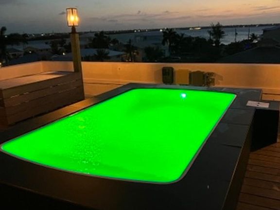 Modern waterfront multi story house with private rooftop pool patio overlooking ocean. First floor covered parking Second floor 3.5 bedrooms Third floor 1000 ft living area Fourth floor rooftop heated pool and dining Breathtaking Panoramic views of ocean with total privacy. Metallic epoxy floors. Double oven gas stove. 35 ft sliding glass wall. Large balconies on all 3 floors. 30 minutes to Key west. Initially listed for a 6months rental, but will consider less to the right renters. A 28 day minimum rental per law.