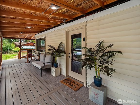 Welcome to this charming, country bungalow on .86 of an acre in Veazie Valley! This 2 bed, 1 bath, 720SF home w/ a HUGE full 720SF basement also boasts a fenced and cross-fenced lot w/ a 21' X 30' barn w/ power. Wrap-around covered porch w/ Trex decking. Hardwood flooring in living & beds. Kitchen w/stainless steel appliances, vinyl plank floors, & abundant cabinet storage. Main bed w/built-in shelving & drawers. Full bath w/ vinyl plank flooring. Forced air 90% efficiency propane furnace. The basement provides a blank canvas for the new owner's creativity w/ ample ceiling height! Fully fenced. Garden/tool shed. Back patio w/ adjacent firepit entertaining area. Private setting on a quiet road at a great location in Enumclaw!