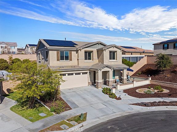 Discover this beautifully upgraded 5-bedroom, 3-bathroom home nestled at the end of a quiet cul-de-sac on an oversized .28-acre lot. Boasting an open and functional layout, this home offers five true bedrooms, including a downstairs bedroom and full bathroom, a spacious upstairs loft, and a private office downstairs—perfect for work or study. The heart of the home is the gourmet kitchen, featuring a huge island, granite countertops, upgraded stainless steel appliances, 5 burner cooktop with a gorgeous stainless steel hood, a walk-in pantry, and ample cabinet and counter space—ideal for cooking and entertaining. The expansive family room flows seamlessly into the dining and kitchen areas, creating a warm and inviting space. Upstairs, you'll find a large bonus room—excellent for additional living space—along with three generously sized secondary bedrooms, a spacious secondary bathroom, a large linen closet for extra storage, and a convenient upstairs laundry room. The oversized primary suite is a true retreat, featuring a spa-like ensuite bathroom with dual sinks, a soaking tub, a step-in shower, and a walk-in closet. Step outside to your entertainer’s dream backyard, complete with a huge Alumawood patio cover, a stunning custom-built outdoor kitchen featuring a BBQ, side burner, refrigerator, and bar seating—perfect for enjoying a cold drink on a hot summer day. Extensive custom concrete work and lush landscaping complete this incredible outdoor space.