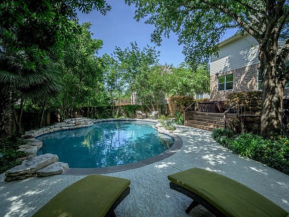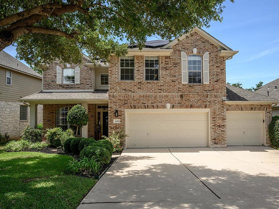 Call Agent to Show. Rare 3 car garage and Pool at this price point in Steiner Ranch. Backyard Oasis lush with foliage and trees. Former model home. New luxury vinyl plank downstairs, new carpet in 3 bedrooms, wood flooring upstairs and in master bed. Solar panels, 3 full bath, office, 4 beds up. Upgraded light fixtures, new landscaping. Elfa storage in laundry room and in built-out attic space. Enjoy outdoor living on the back porch and large IPE deck. Hot tub conveys. Gas fireplace. Exemplary schools.
