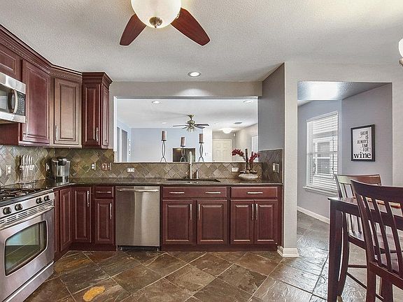 STUNNING pristine open floor plan. Features large gourmet kitchen with granite counter tops, 42'' cherry cabinets, stainlesssteel appliances & refrigerator stays. Beautiful slate flooring in the living area, kitchen, bath, utility room and hallway. 2'' fauxblinds. Granite counter tops in main bathrooms. A/C replaced in 2016. Extra large storage closet in master. Fully fenced back yard with covered patio,perfect for relaxing or entertaining. Close to shopping, schools and Grand Parkway.